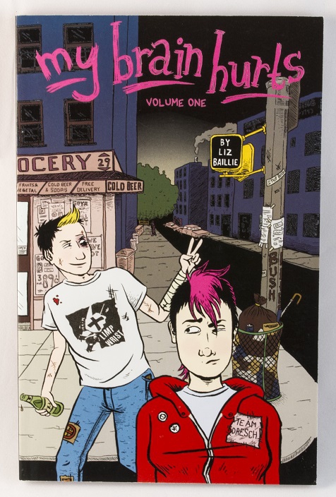 A group of teenage queer punks get in perpetual trouble with the police when they aren’t flirting over loud music or postering their high school with flyers to allow same sex couples at prom. It’s like they were your actual high school peers – pissing off the administration and taking care of each other when they get beat up by skinheads. Liz Baillie has a real talent for dialogue, characters, storytelling, and capturing New York – especially those moments that we all live, awkwardly making out, pulling pranks, and drinking beer. This graphic novel collects the first five (out of 10) issues of the comic My Brain Hurts.